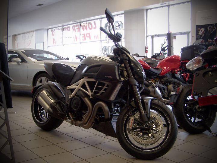 2013 DUCATI DIAVEL AMG Own a piece of Ducati history pre-Audi with this limited production numbered series bike. Available in White Carbon. Full factory warranty included. Fully comprehensive extended warranty available. All trades considered: Bikes, Cars, SUVs etc. Easy financing, refinancing, and leasing possible. Open loan terms are payable at any time without penalties or fees. Finance for longer terms also available. Please call us and save on your monthly payments starting today! We have a full line of Ducati Motorcycles, Parts, Accessories & Apparels (Ducati Performance). Great selection of mildly used Ducati Motorcycles in showroom as well. New Lotus 2018 and some 2019 Models in showroom. We are an authorized dealership. Lotus / Ducati. Our company was founded in 1982 as the source of replacement parts for British and European Sports Cars. Peninsula Imports Ducati/Lotus of Oakville. 2412 South Service Rd. West Oakville, ON L6L5M9 Canada 905-847-0838. 1-800-999-1209 SALES@PENINSULAIMPORTS.COM www.peninsulaimportsducati.com www.peninsulaimports.com www.lotusofoakville.com Delivery to your out of province, office or cottage: 300$ to most centres across Canada.