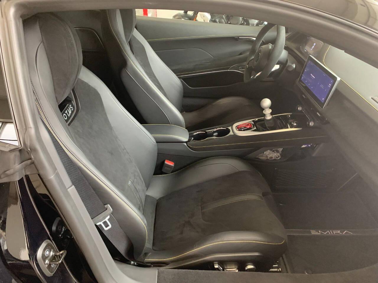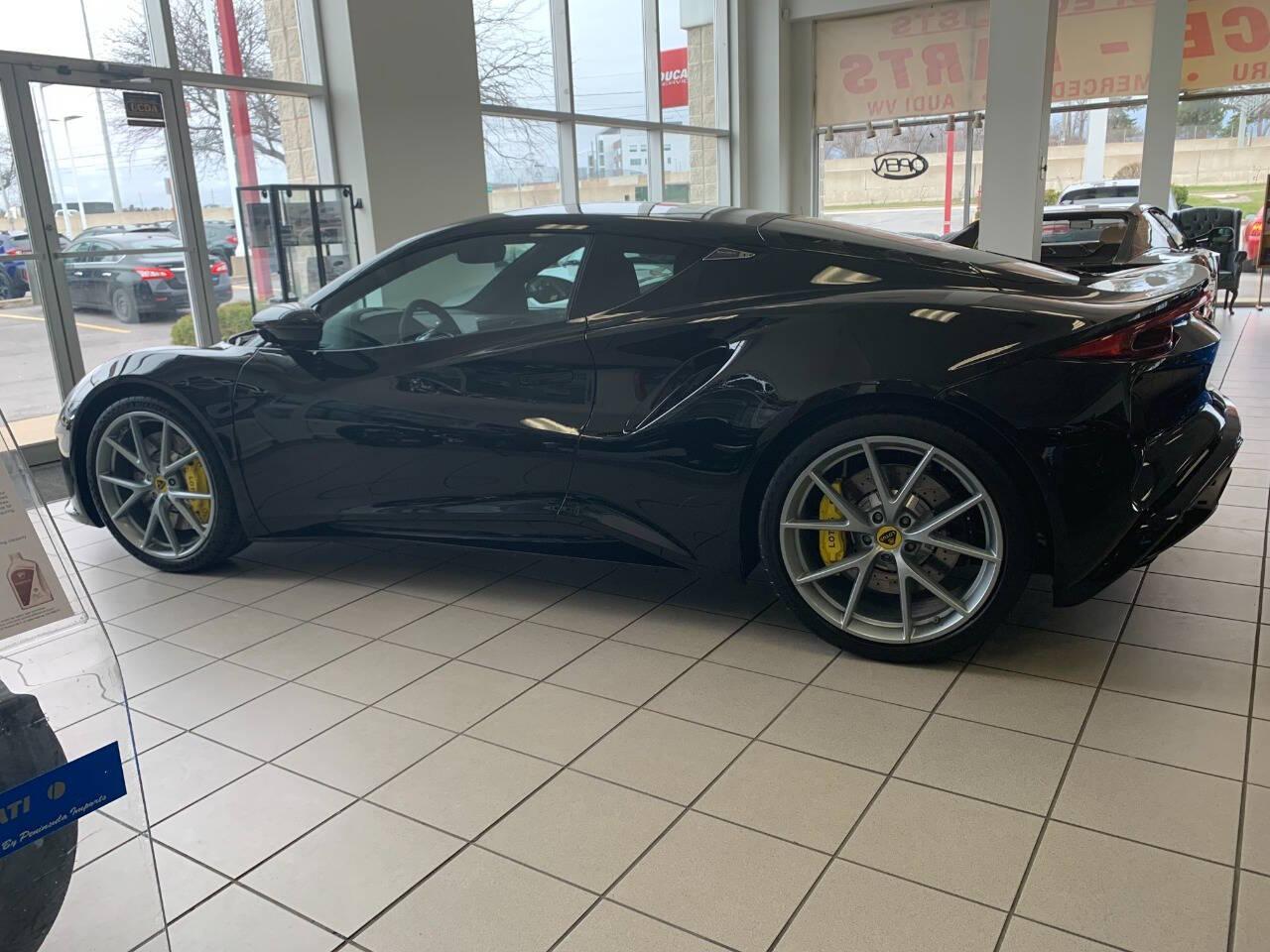 One owner no accidents, serviced by us. No Luxury Tax, V6 Manual.Experience the pinnacle of British sports car engineering at Lotus of Oakville with our breathtaking 2024 Lotus Emira. Built for the purist and designed to turn heads, this mid-engine marvel offers a thrilling intersection of raw performance and bespoke craftsmanship. Draped in the incredibly exclusive Cosmos Black—an ultra-premium, multi-dimensional metallic finish. This specific Emira possesses an undeniable hyper-car presence that demands attention on every Ontario road. The exterior's aggressive styling is perfectly complemented by striking Yellow Brake Calipers ($980) that peek out from behind the alloys, hinting at the immense stopping power within. Connecting all of this performance to the pavement is a set of road-legal, track-ready Michelin Pilot Sport Cup 2 tires ($685), ensuring absolute maximum grip whether you are carving through canyon roads or dominating a weekend track day. Beneath this stunning shell lies the standard, legendary Lotus lightweight bonded aluminum chassis, communicative hydraulic power steering, and a precision-tuned rear-wheel-drive platform that delivers a pure, unadulterated driving dynamic. Step inside, and the cabin transforms into a luxurious, track-inspired cockpit heavily outfitted with premium upgrades. You are instantly greeted by the Alcantara Interior Pack ($3,650), which wraps the standard 12-way power-adjustable, heated sports seats and the headliner in a rich, tactile material designed for both high-speed lateral support and grand touring comfort. The driver's tactile connection to the road is further enhanced by a flat-bottomed Alcantara Steering Wheel ($950) and drilled aluminum Sport Pedals ($480), while tailored Premium Carpet Mats ($450) add a touch of refined everyday durability. To elevate the journey even further, this Emira boasts a 10-speaker hyper-realistic KEF Premium Audio system ($1,850), featuring British brand KEF's renowned Uni-Q™ technology for an unparalleled acoustic experience. Beyond these exquisite additions, the 2024 Emira delivers an uncompromising, technology-forward daily driving experience right out of the box. Every drive is supported by a wealth of standard features, including a crisp 10.25-inch centrally mounted infotainment touchscreen seamlessly paired with a customizable 12.3-inch TFT driver display. Standard Apple CarPlay™ and Android Auto™ keep you effortlessly connected, while modern conveniences like keyless entry and ignition, adaptive cruise control, rain-sensing wipers, and auto-dimming rearview mirrors handle the commute. Brilliant all-LED exterior lighting, complete with auto-leveling projector beam headlamps, ensures the road ahead is always perfectly illuminated. Get it now at Lotus of Oakville.